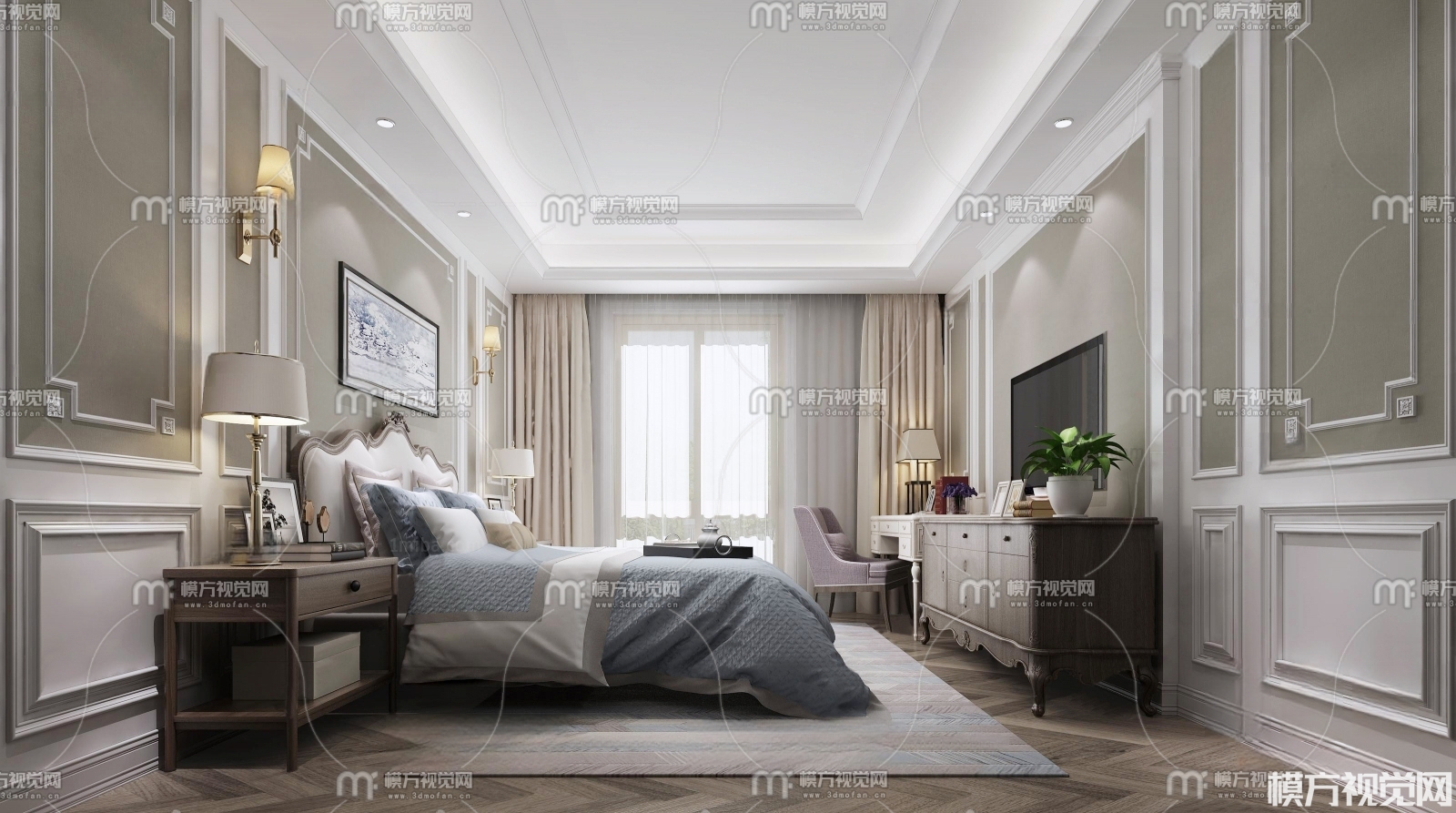 简美卧室3D模型(ID:0005521)
