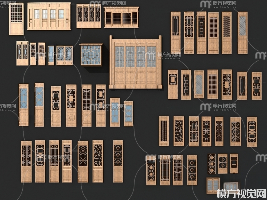 中式隔断 屏风 花窗3D模型(ID:0005523)