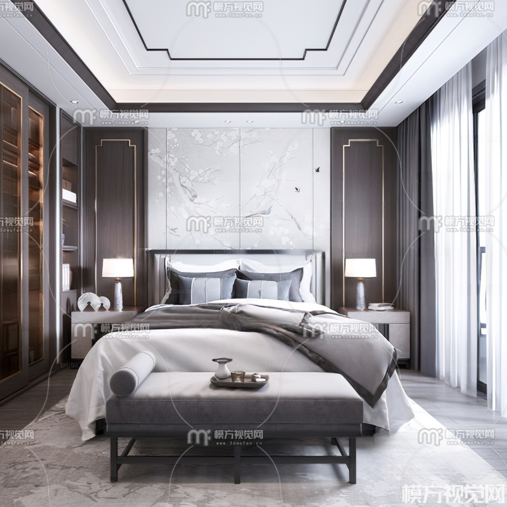 新中式卧室3D模型(ID:0005568)