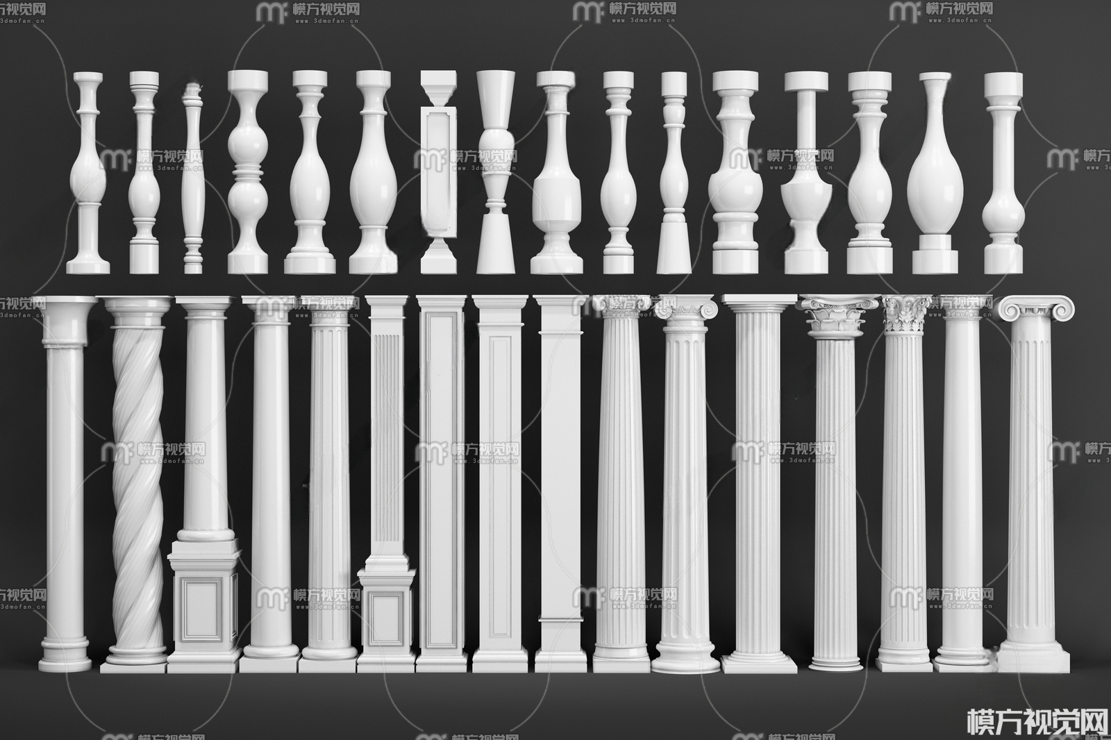 欧式罗马柱 栏杆3D模型(ID:0005591)