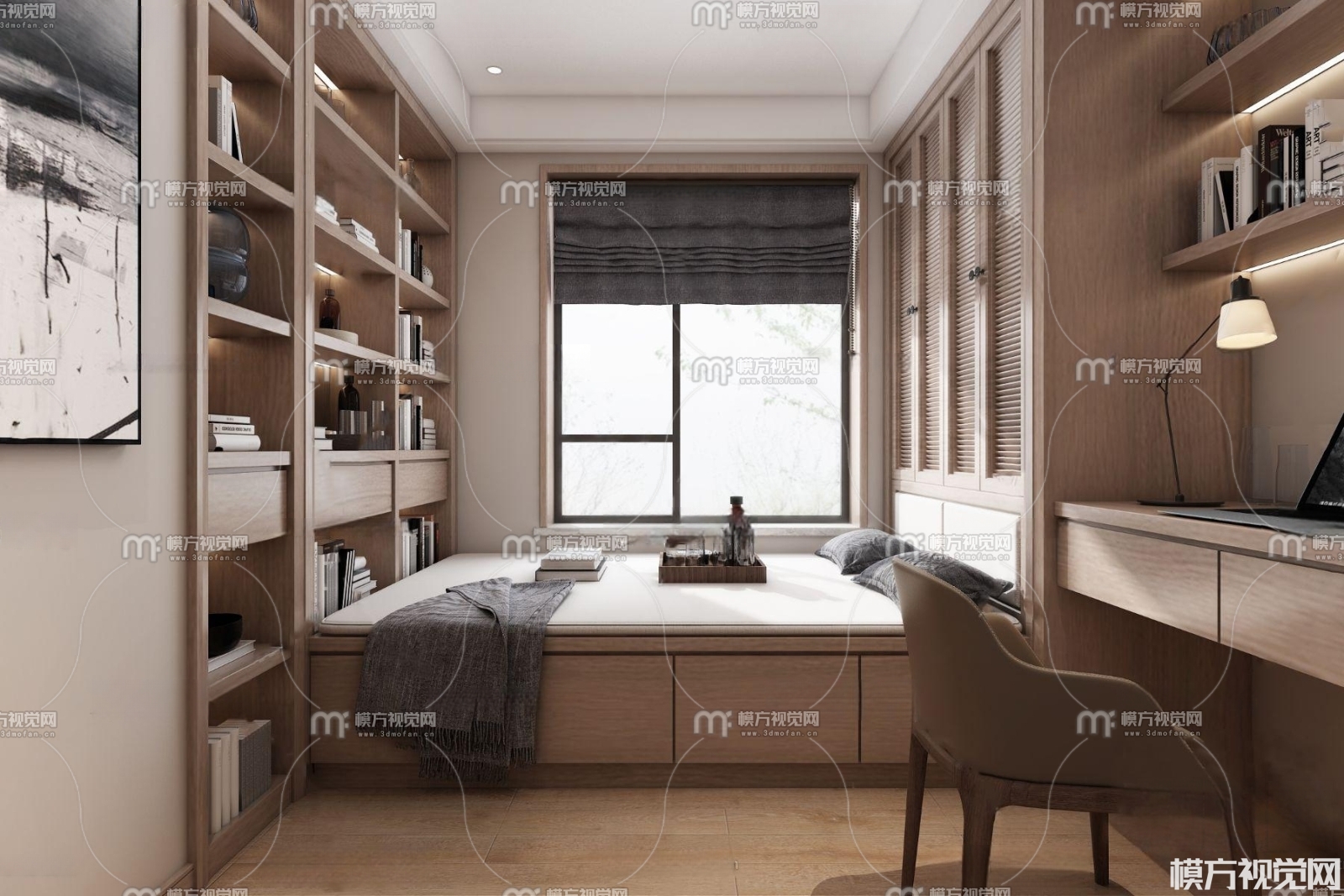 现代榻榻米卧室3D模型(ID:0005609)