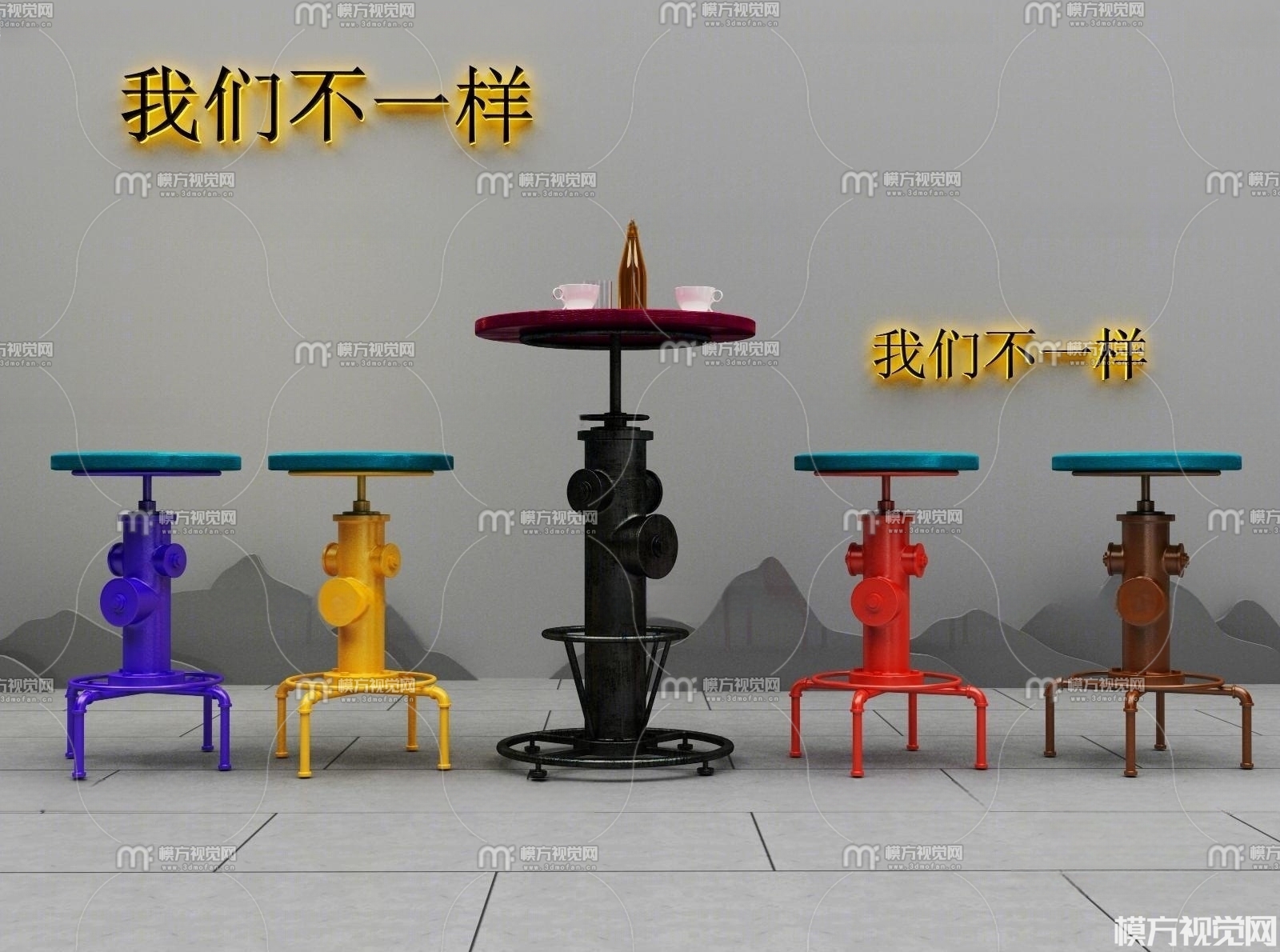 工业风吧凳3D模型(ID:0005685)