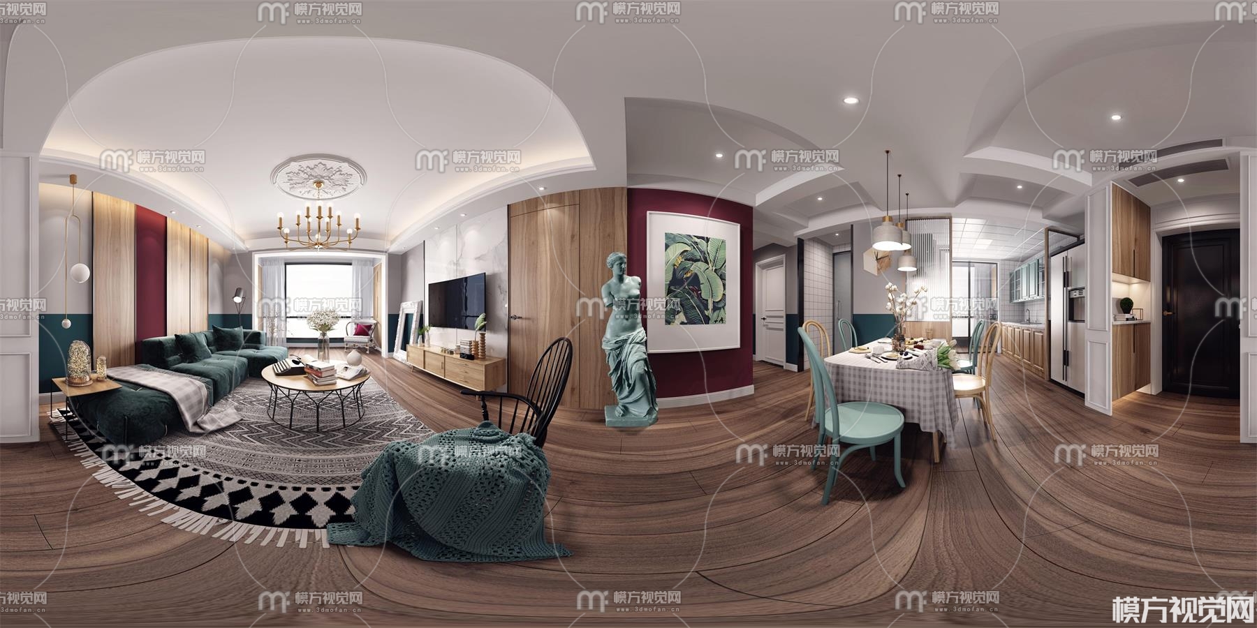 北欧客餐厅厨房全景3D模型(ID:0005688)
