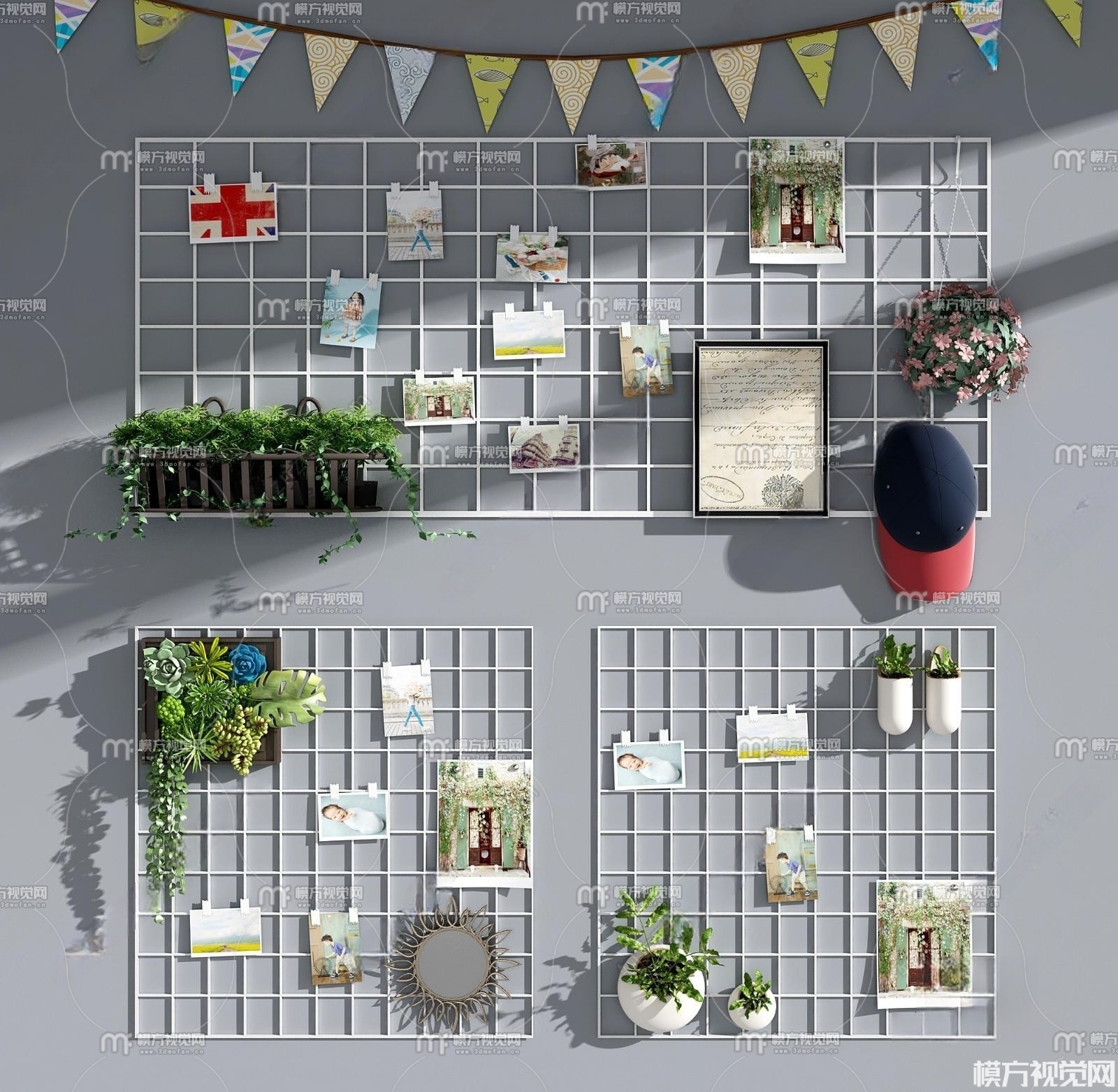 铁艺照片绿植墙饰挂件组合3D模型(ID:0005697)
