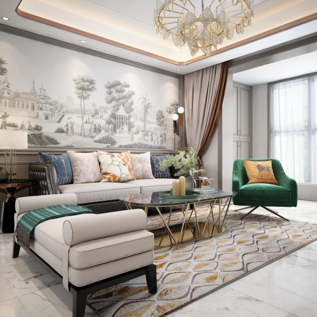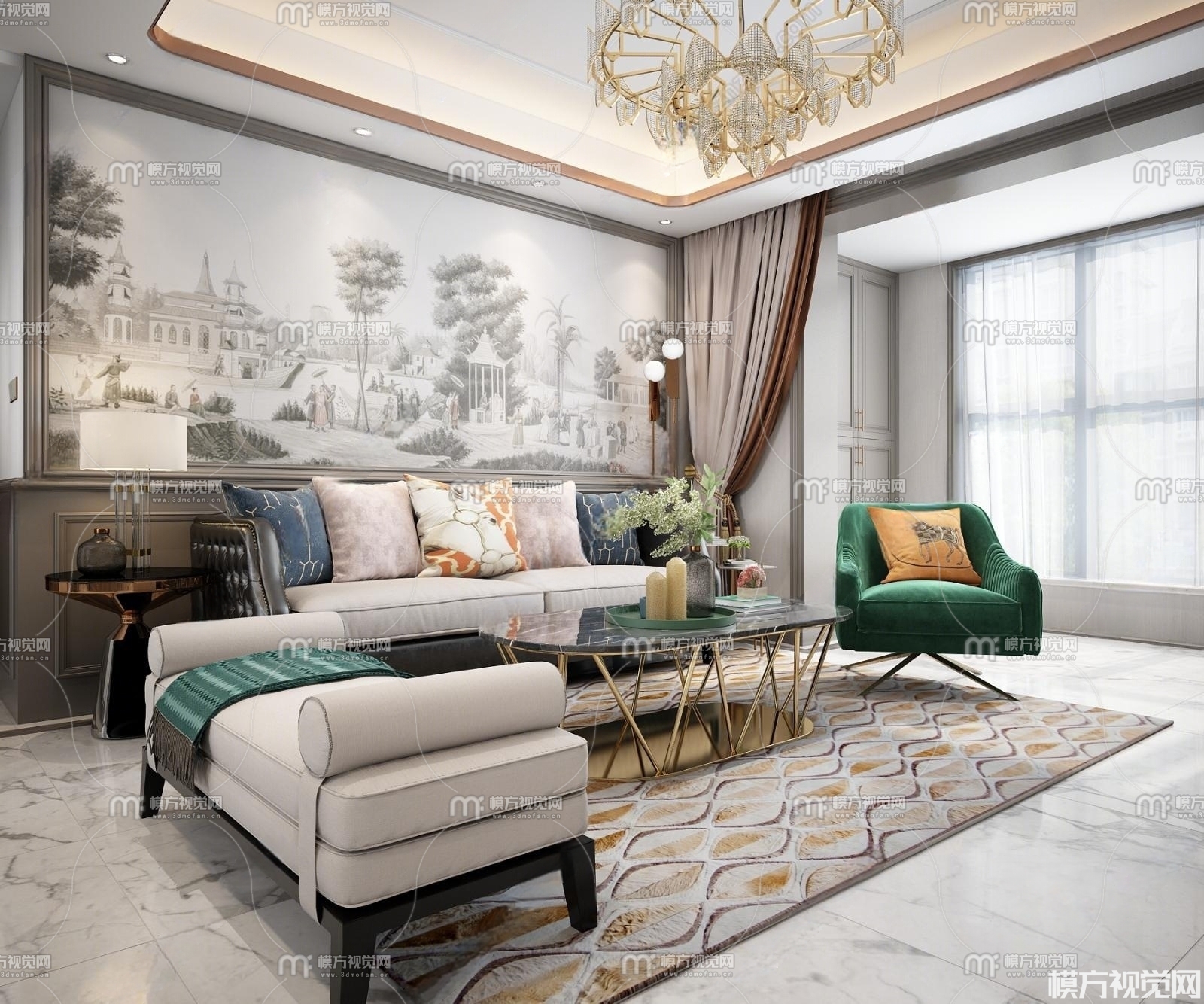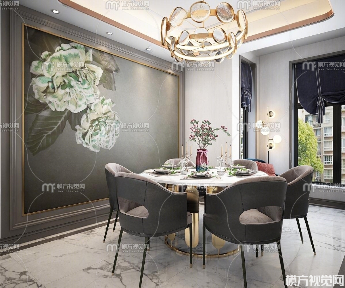现代轻奢客厅餐厅3D模型(ID:0005776)