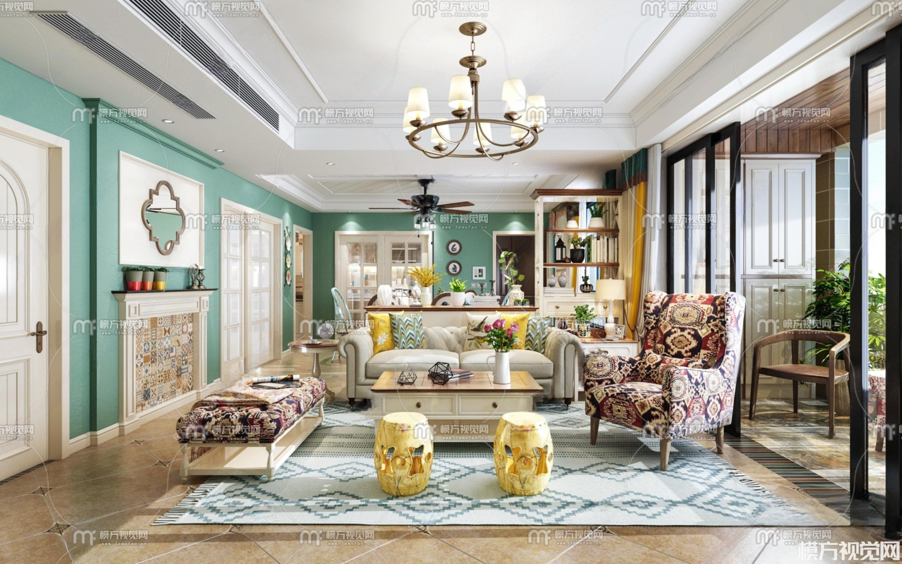 简美客厅餐厅3D模型(ID:0005785)