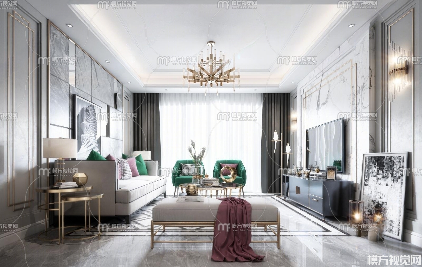 现代轻奢客厅3D模型(ID:0005822)