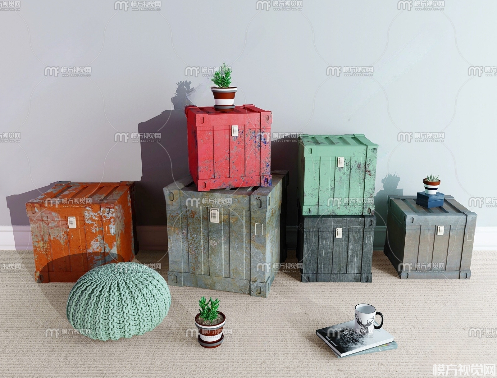 工业风箱子3D模型(ID:0005824)