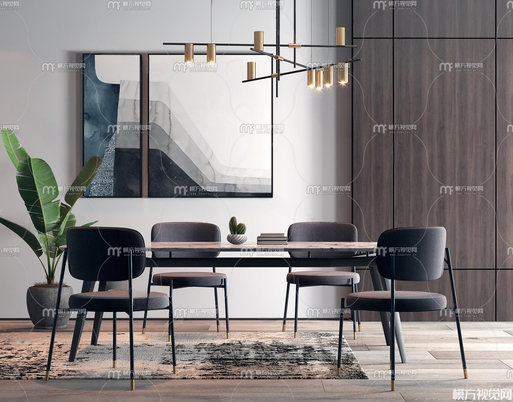 现代餐桌椅吊灯组合3D模型(ID:0005882)