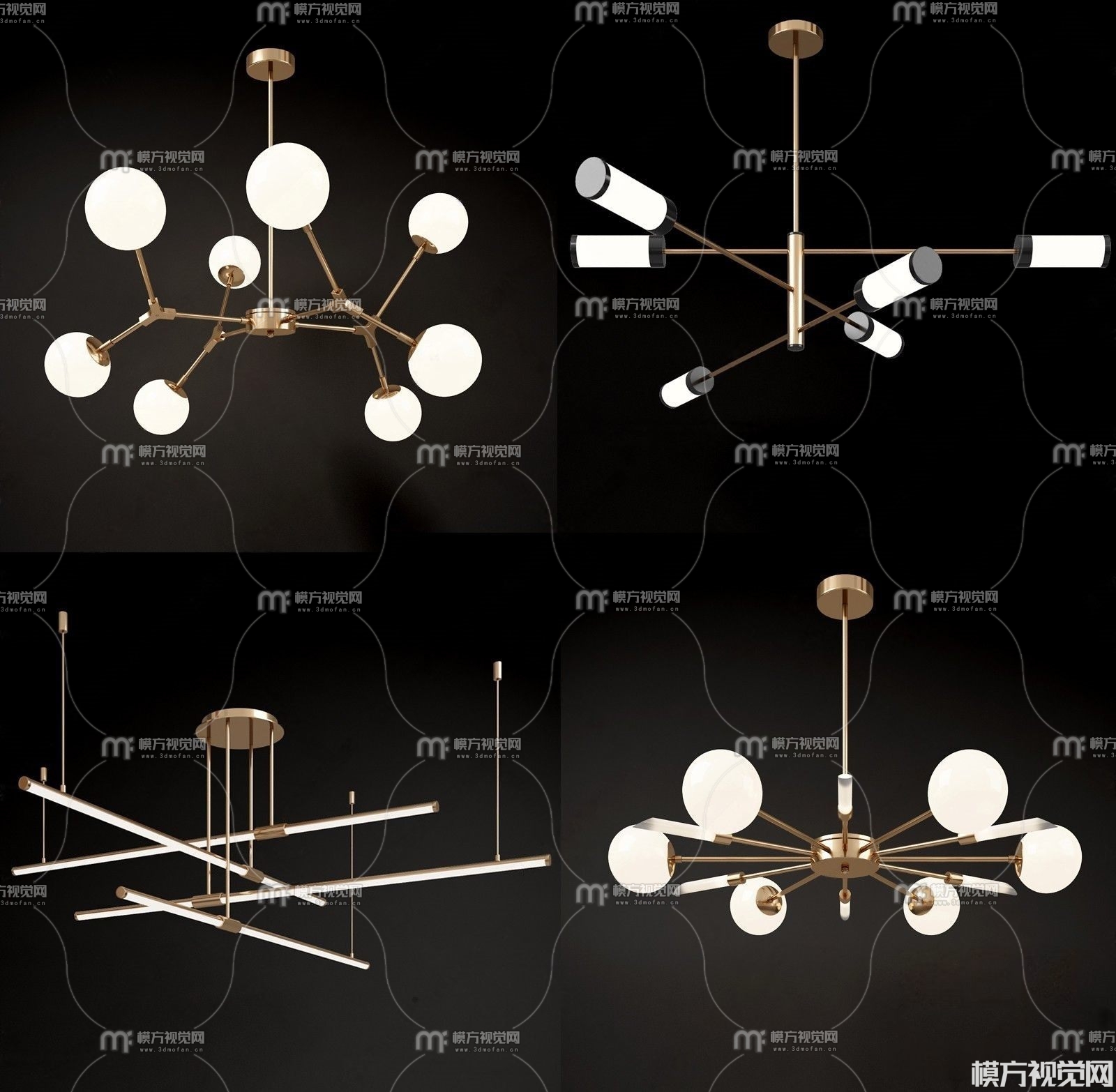现代轻奢吊灯组合3d模型(ID:0000059)