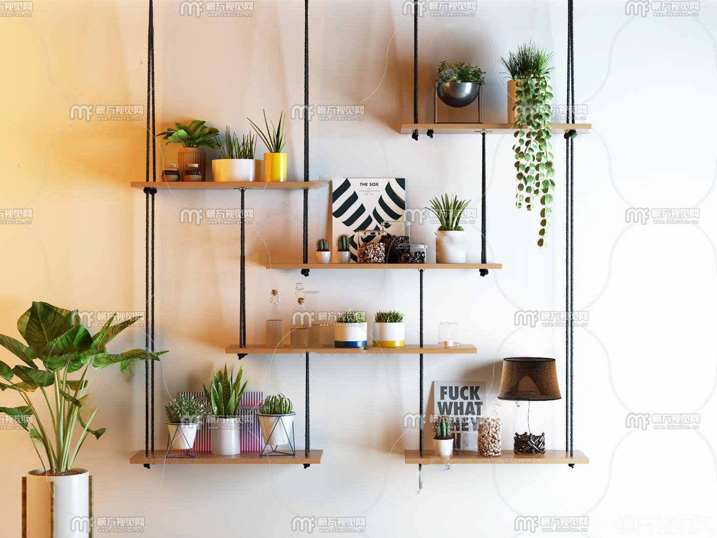 现代绿植盆栽装饰架组合3D模型(ID:0005900)