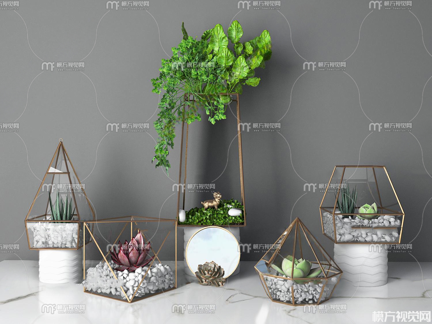 现代多肉绿植盆栽组合3D模型(ID:0005906)