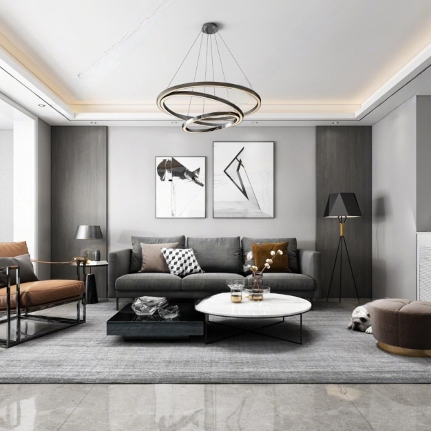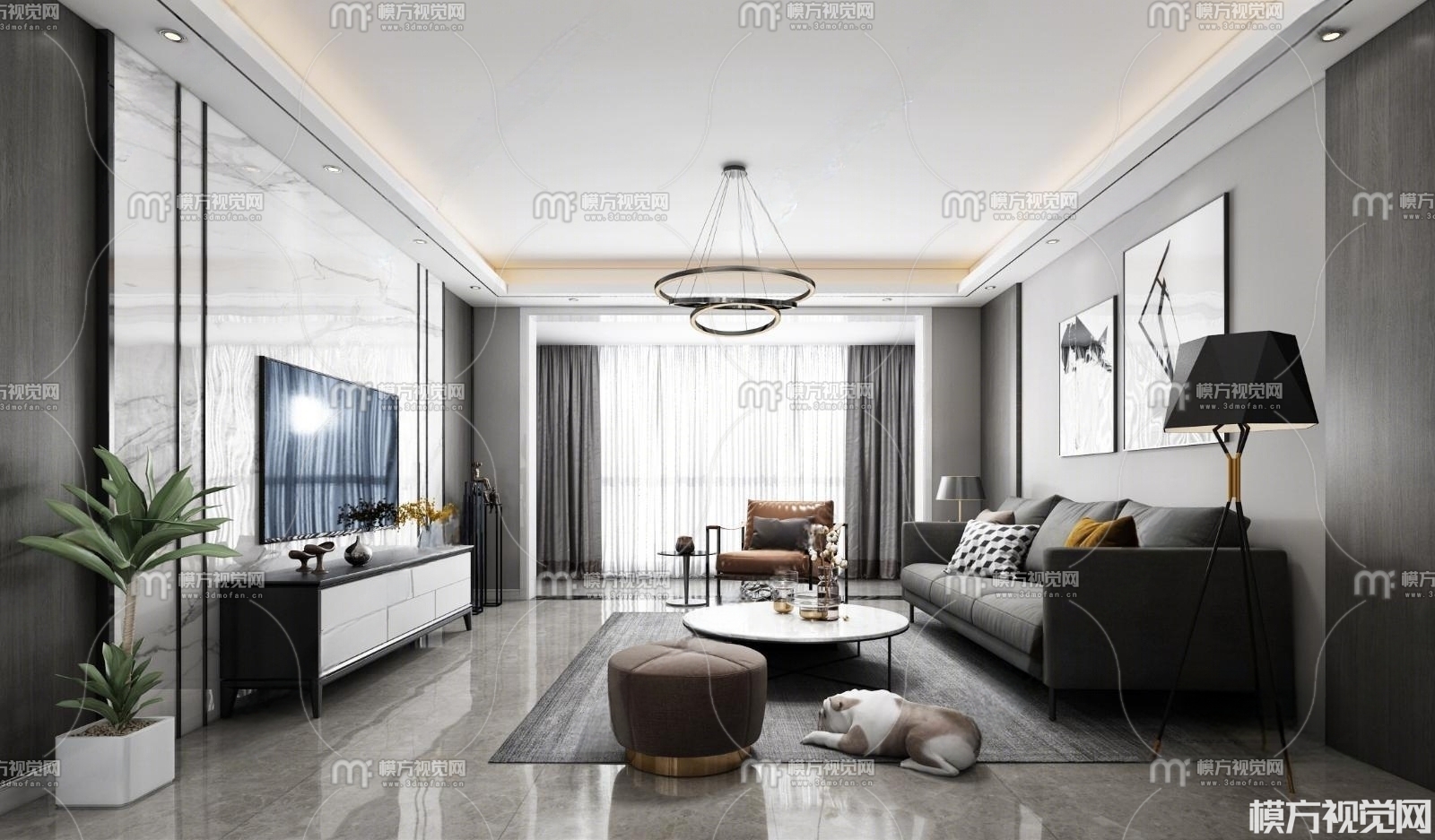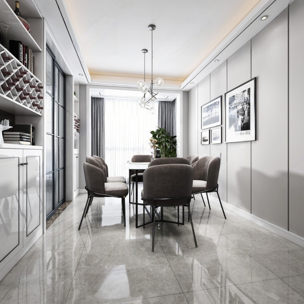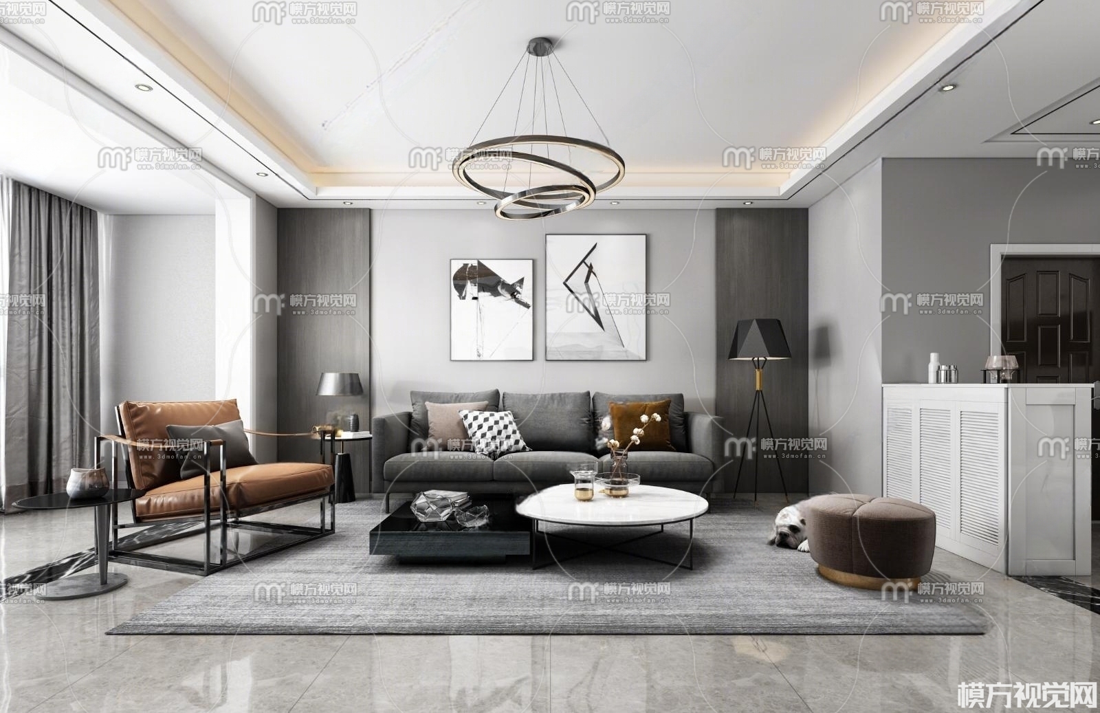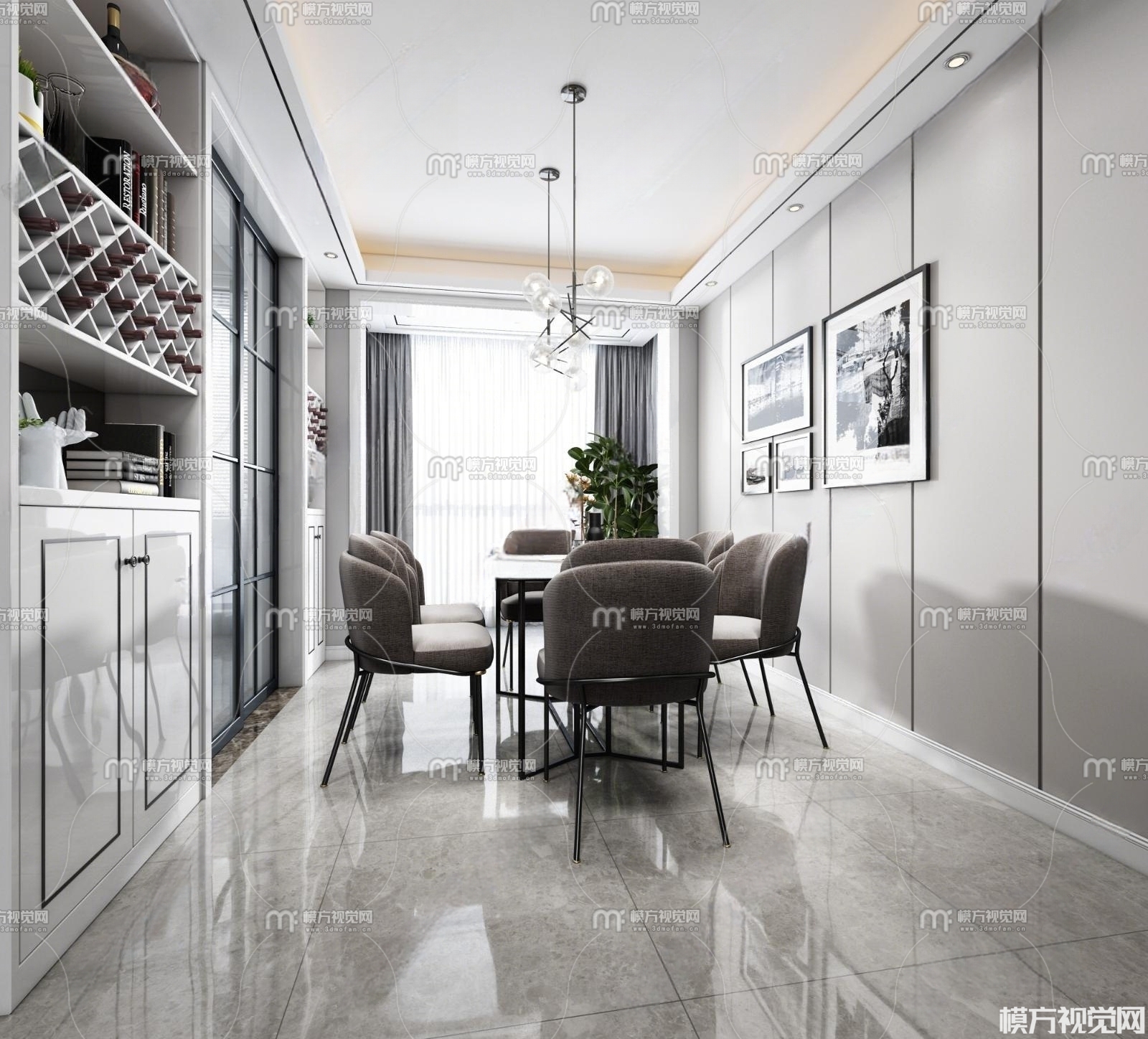 现代黑白灰客厅餐厅3D模型(ID:0005911)