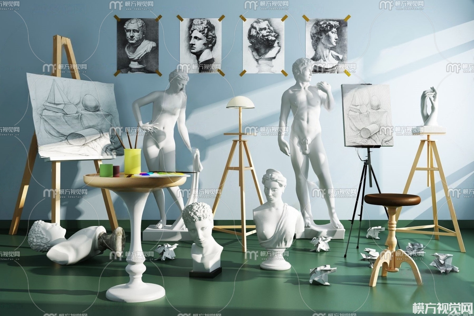 现代画板美术石膏雕塑3D模型(ID:0005915)