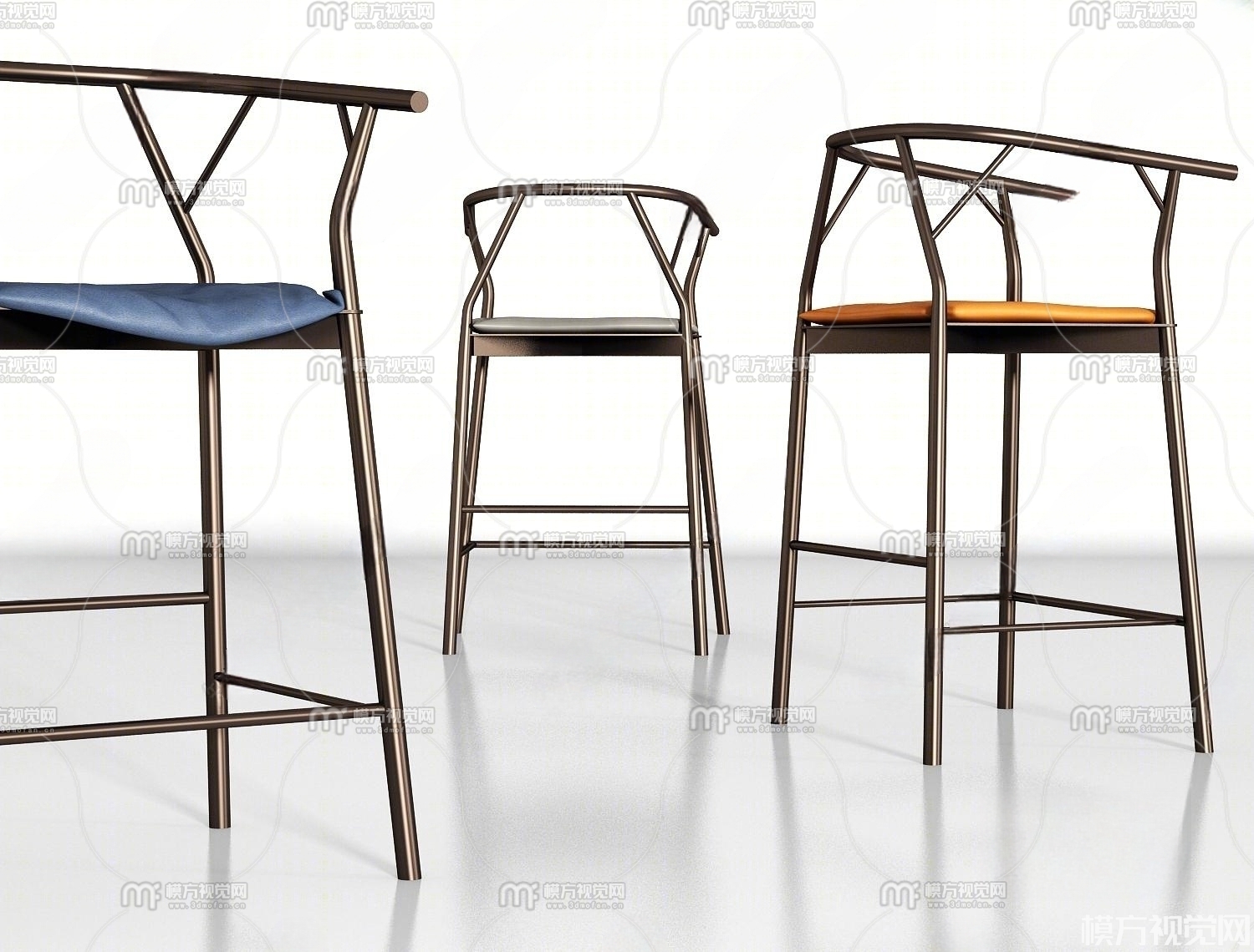 现代金属皮革吧台椅组合3D模型(ID:0005929)