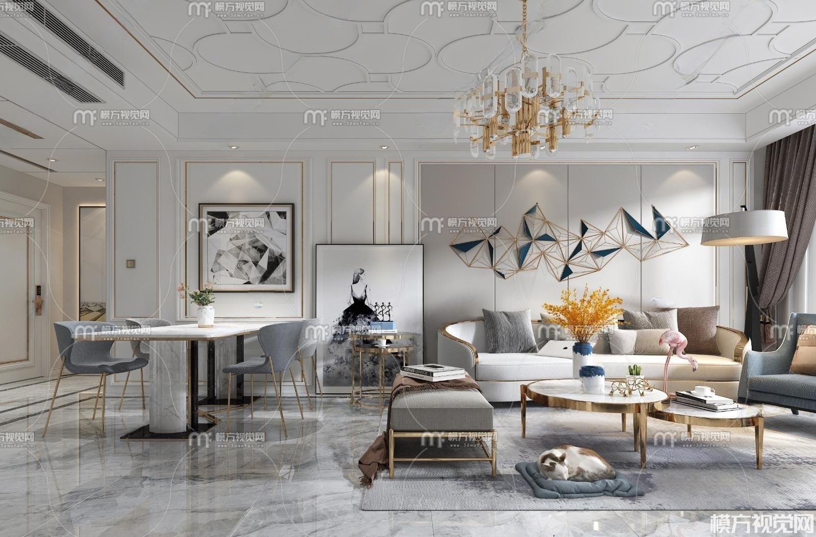 现代客厅餐厅3D模型(ID:0005957)