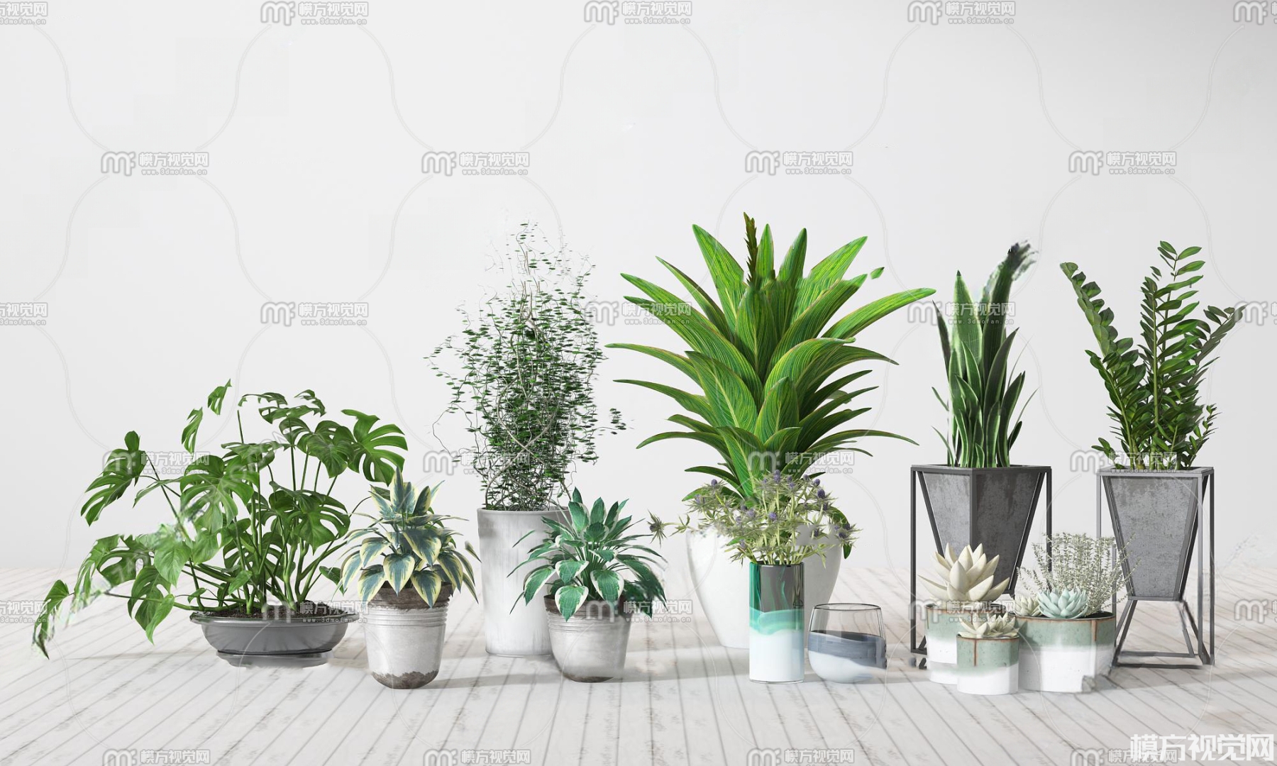 现代绿色植物盆栽组合3D模型(ID:0005967)