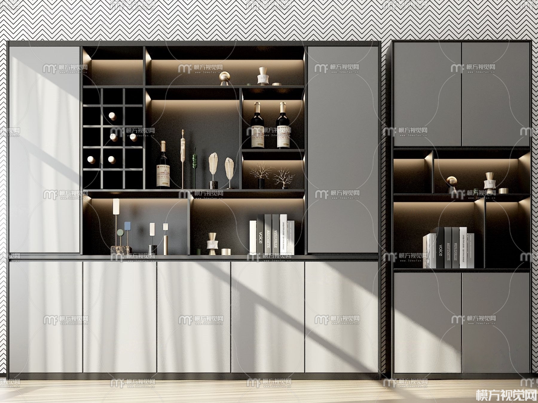 现代轻奢酒柜组合3D模型(ID:0005995)