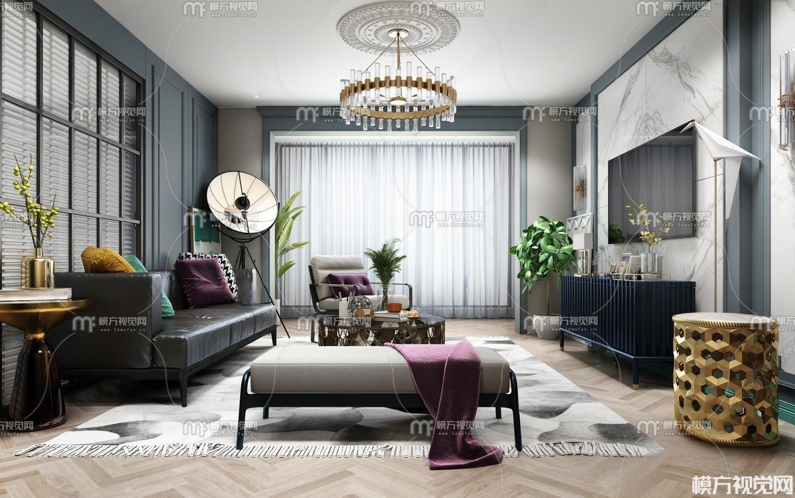 现代轻奢客厅3D模型(ID:0005997)
