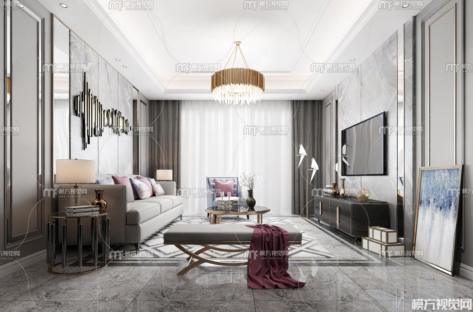 现代轻奢客厅3D模型(ID:0005998)