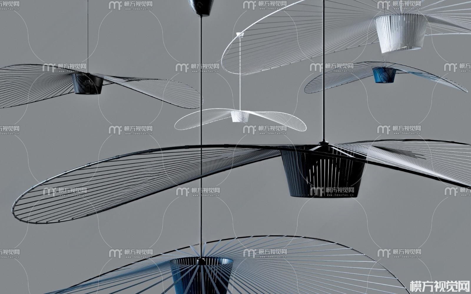 现代铁艺扇叶吊灯3D模型(ID:0006038)