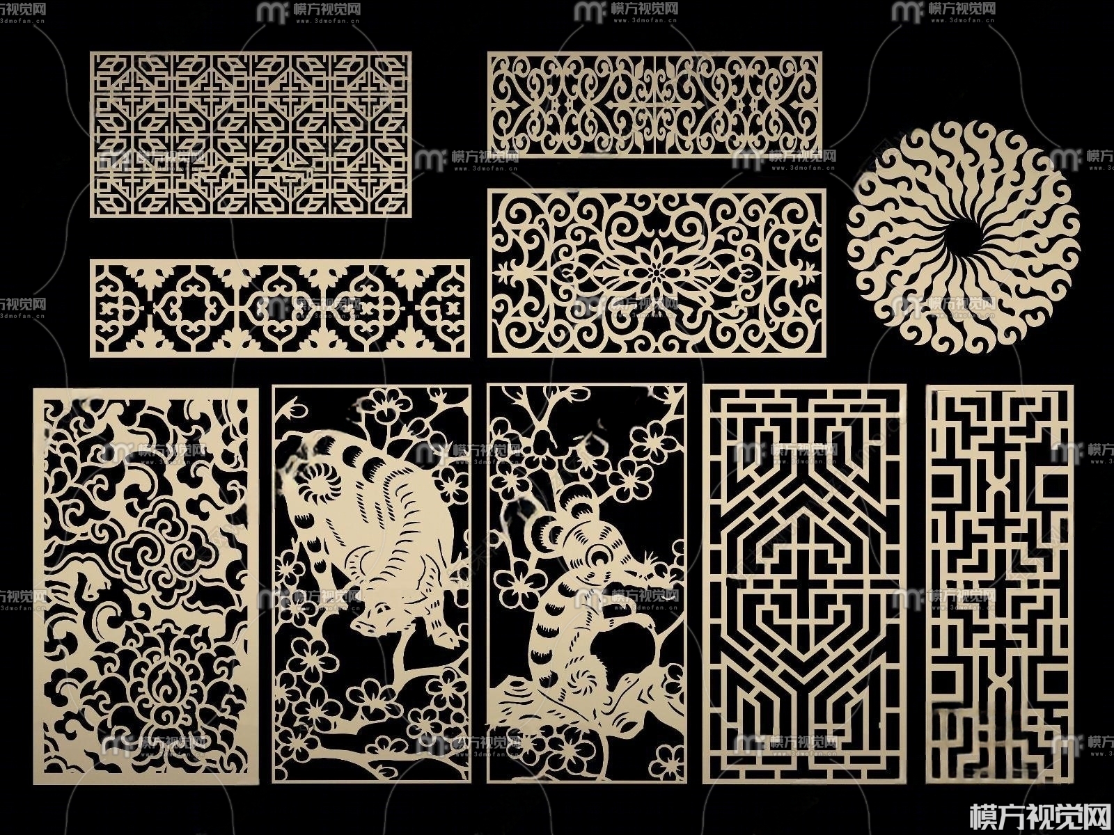 新中式金属雕花屏风隔断组合3D模型(ID:0006130)