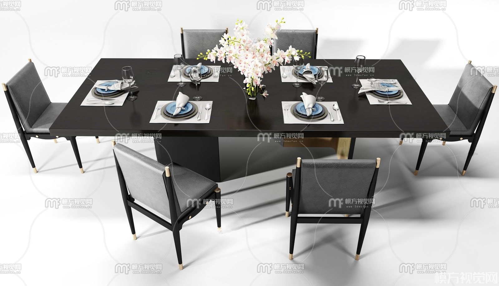 新中式轻奢餐桌椅3D模型(ID:0006151)