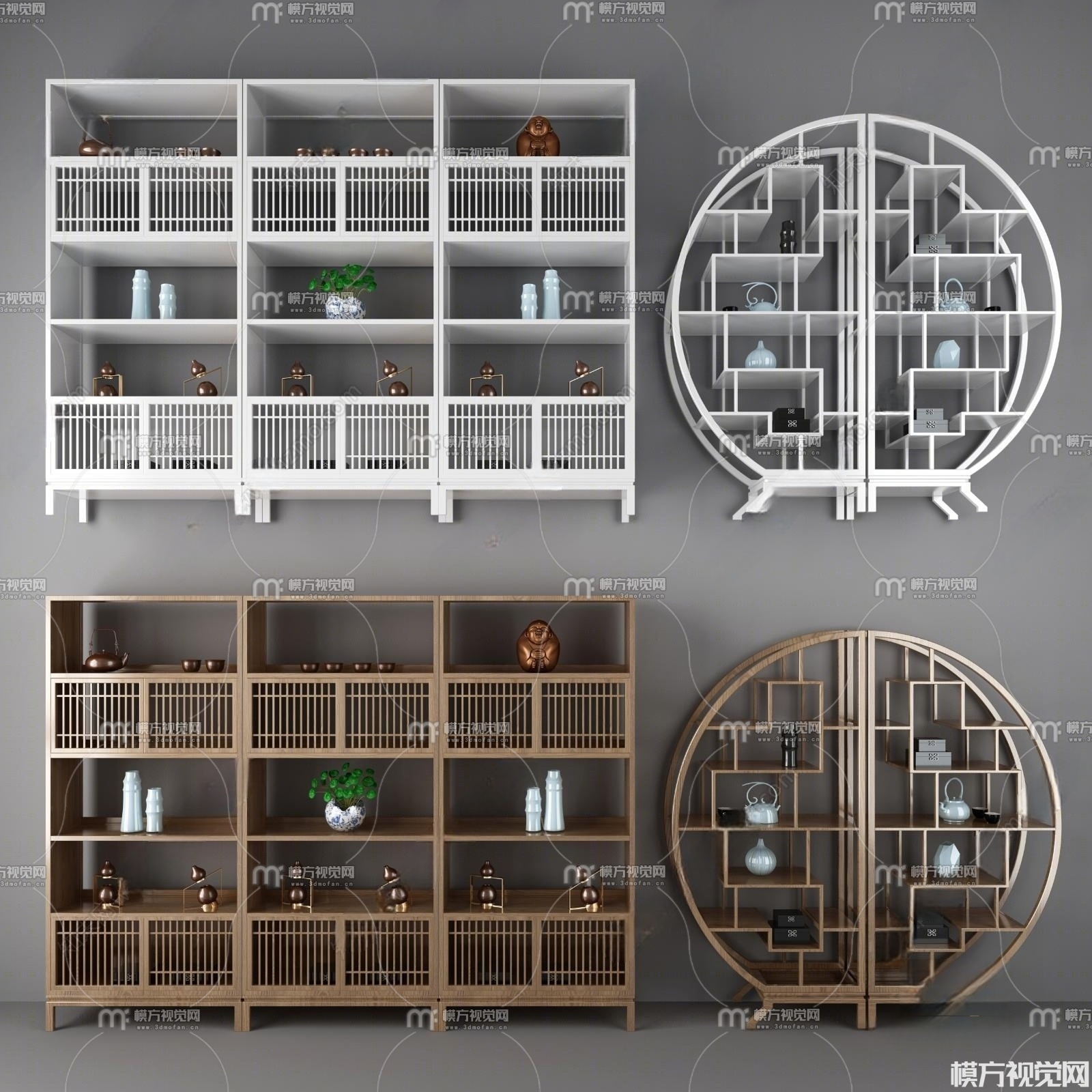 新中式实木博古架摆件组合3D模型(ID:0006161)