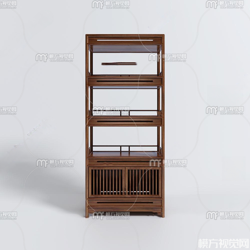 新中式实木博古架装饰柜3D模型(ID:0006163)