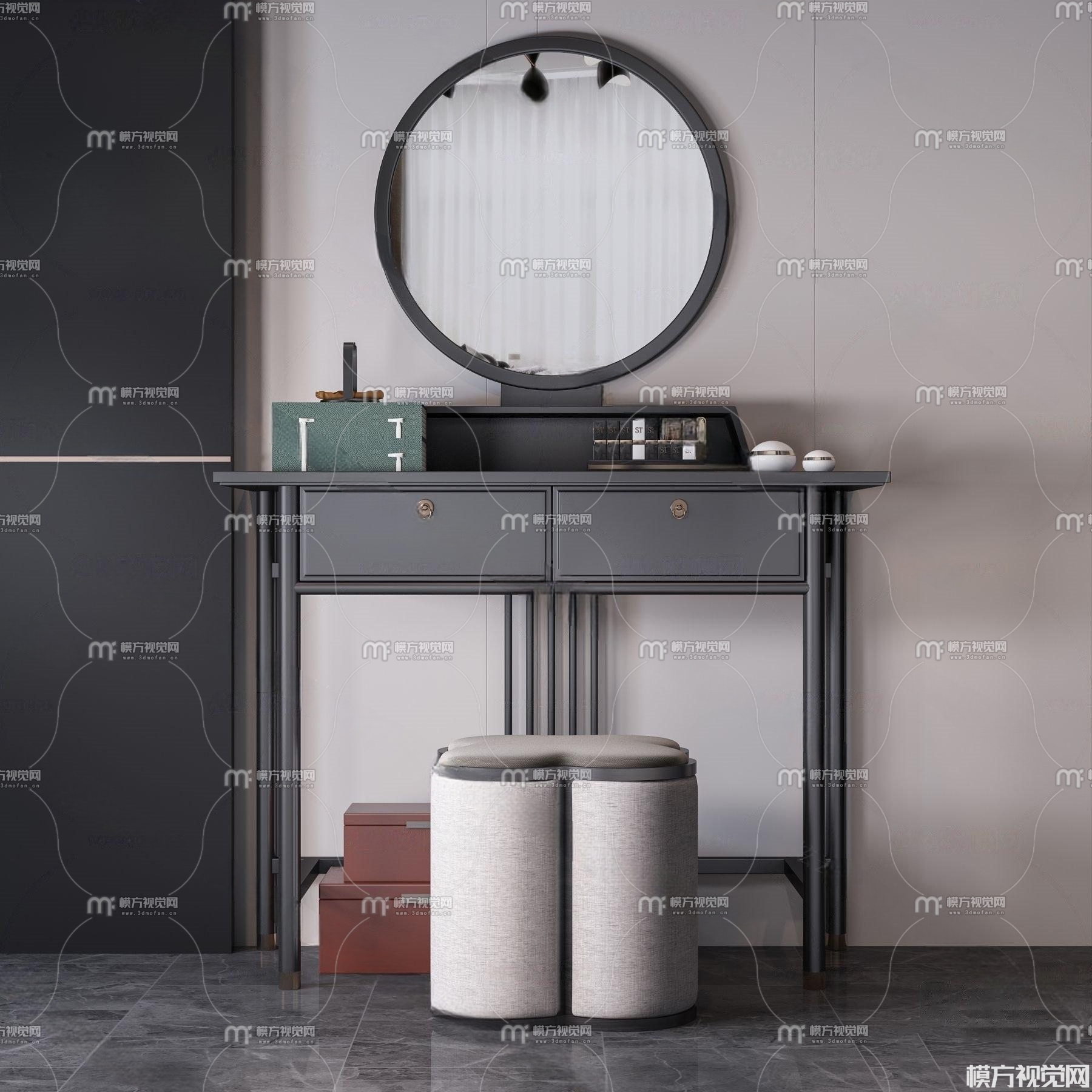 新中式实木梳妆台3D模型(ID:0006164)