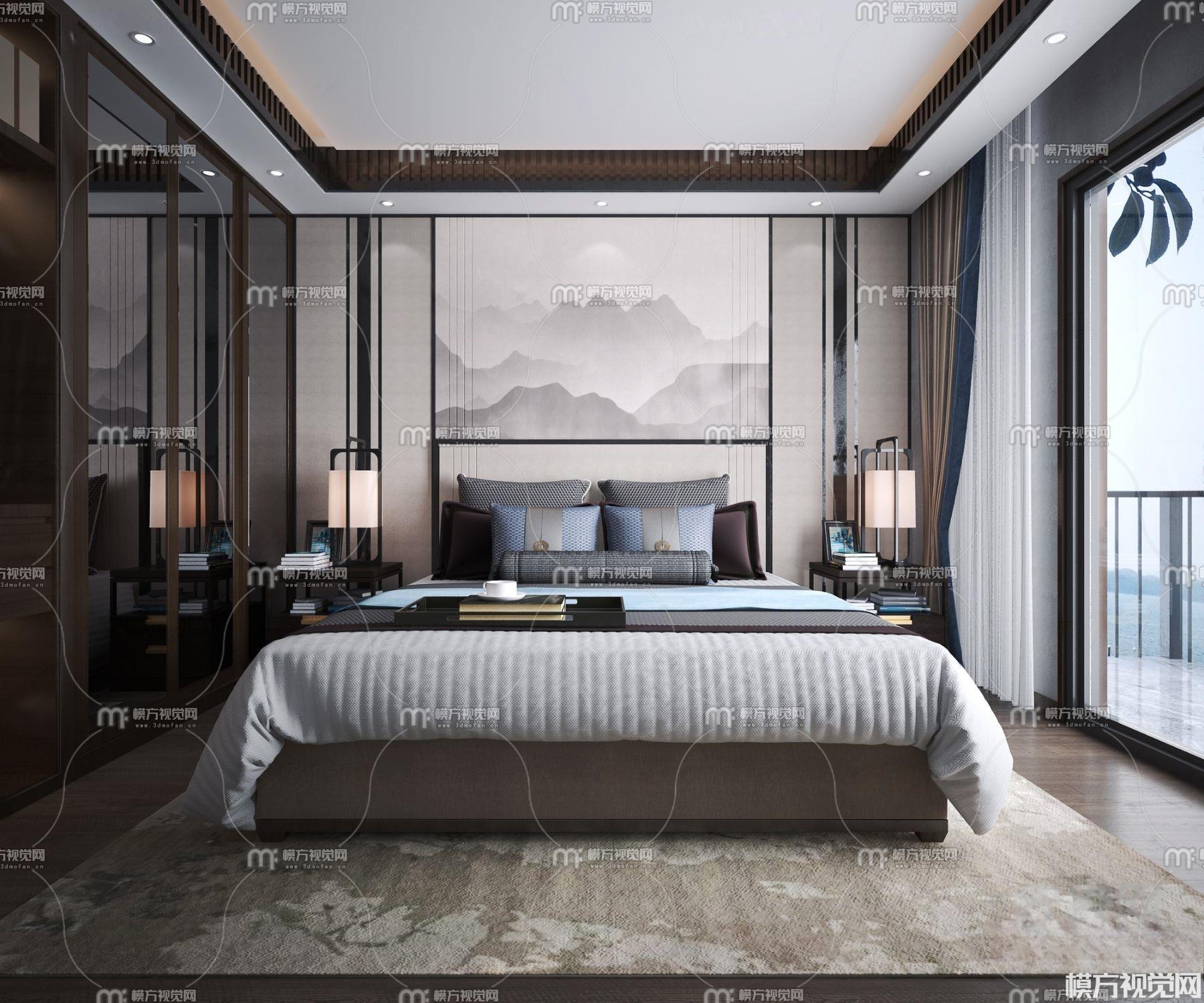 新中式卧室3D模型(ID:0006181)