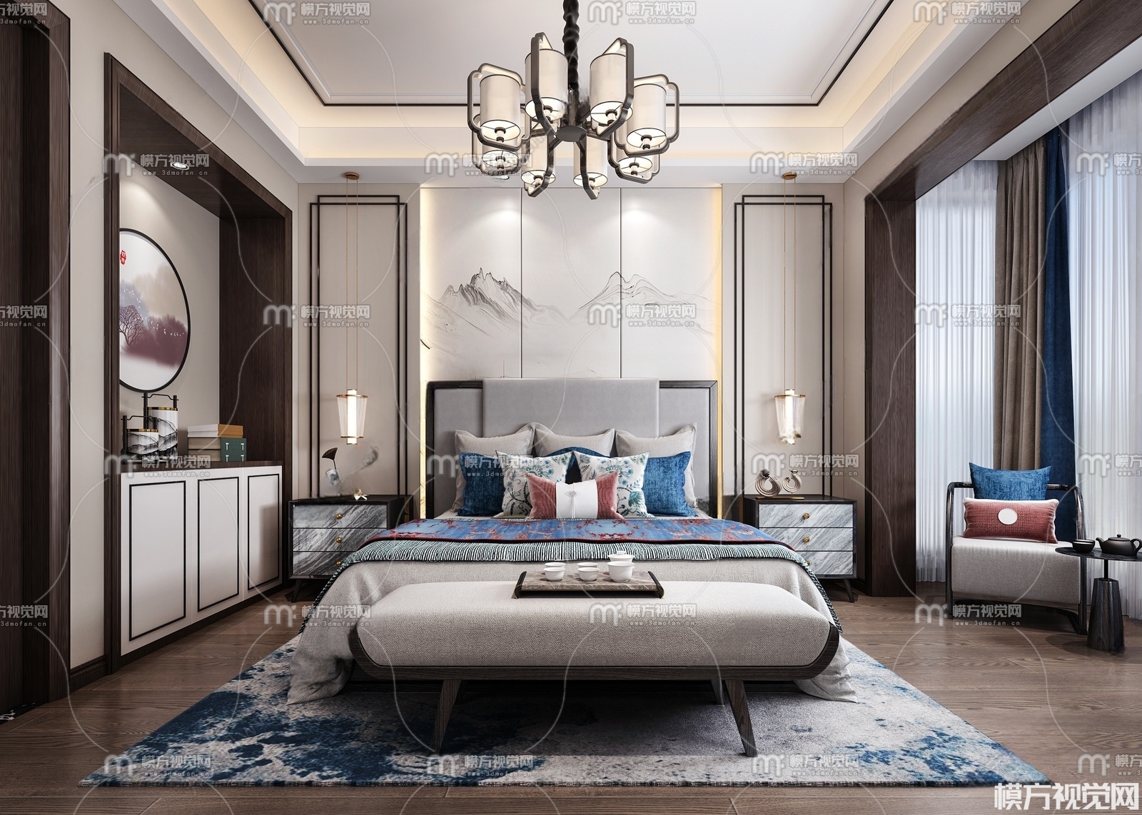新中式卧室3D模型(ID:0006182)