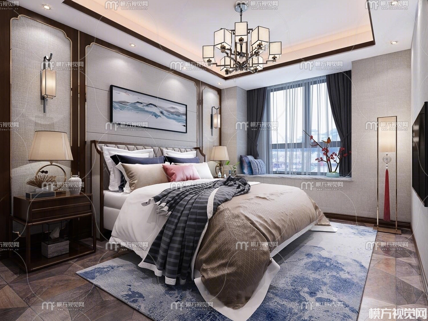 新中式卧室3D模型(ID:0006183)