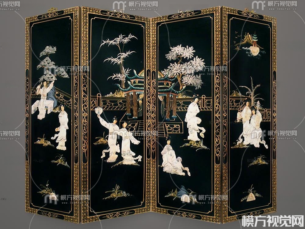中式屏风隔断3D模型(ID:0006236)