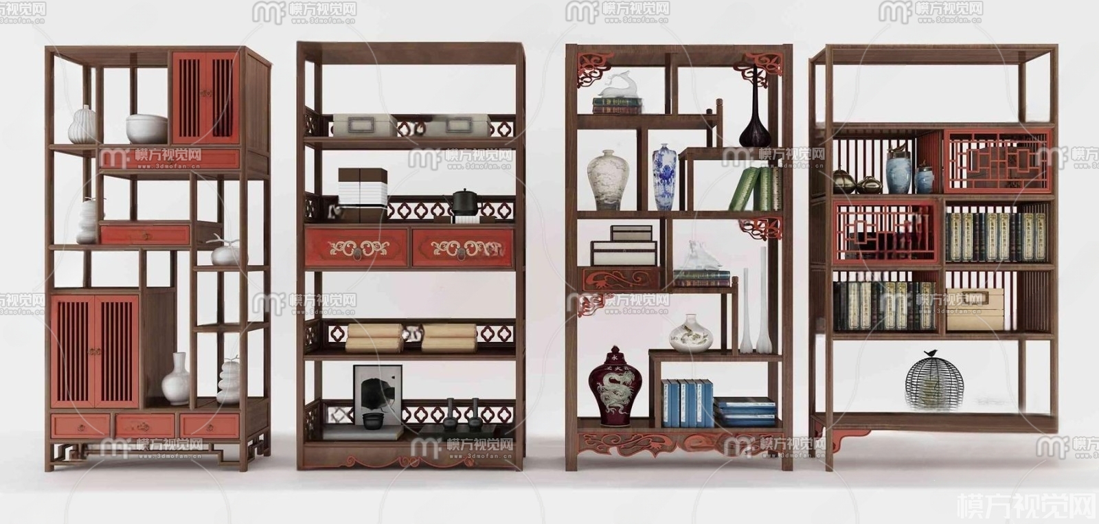 新中式书柜书架博古架组合3D模型(ID:0006237)