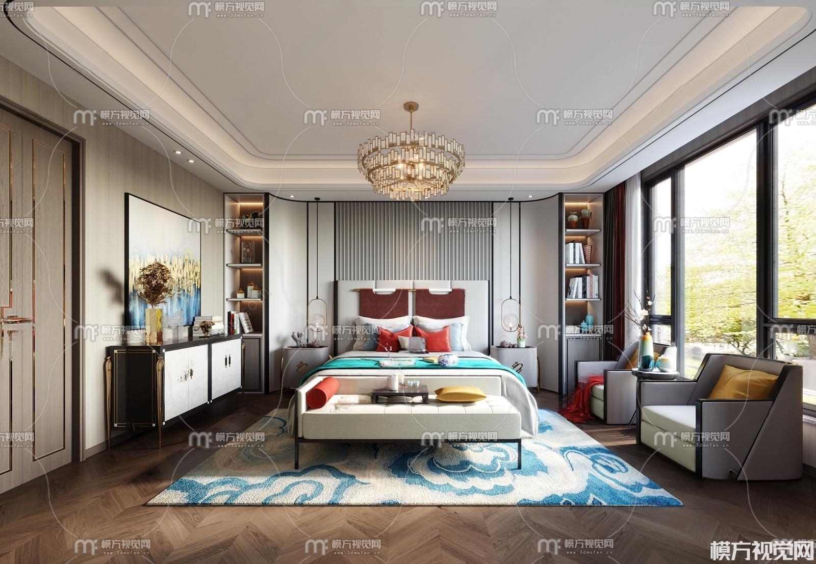 新中式卧室3D模型(ID:0006246)