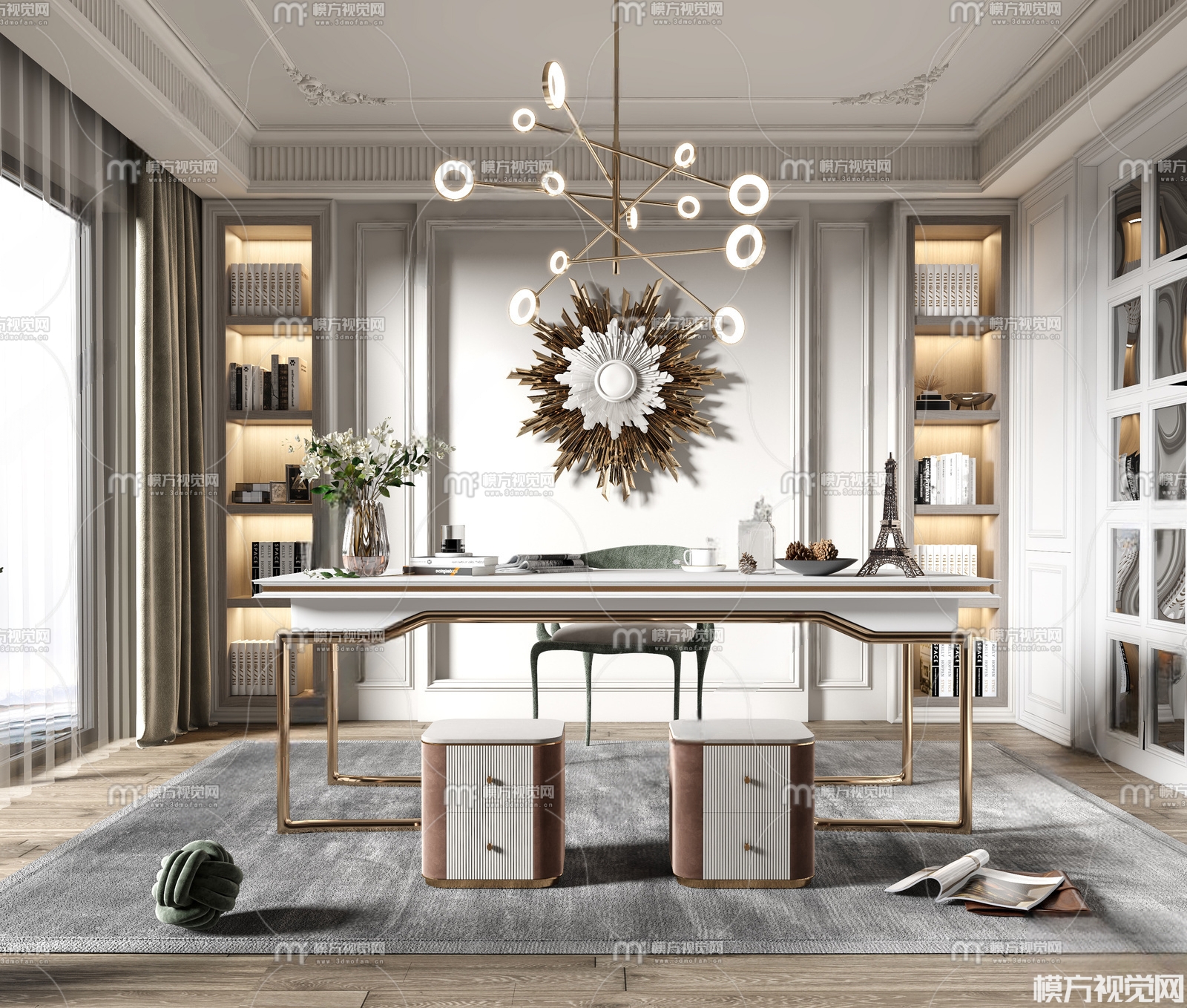 简欧家居书房3D模型(ID:0006280)