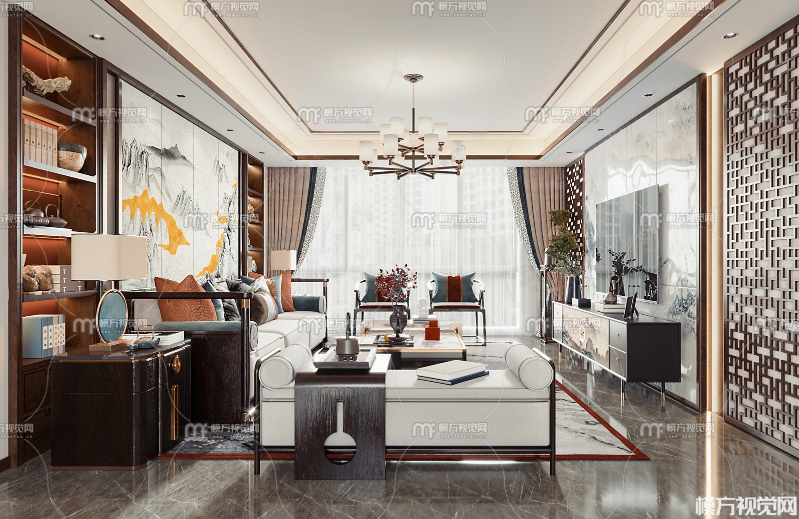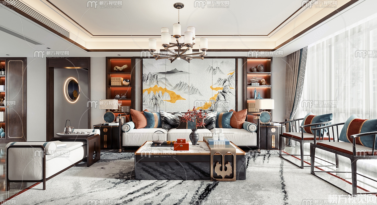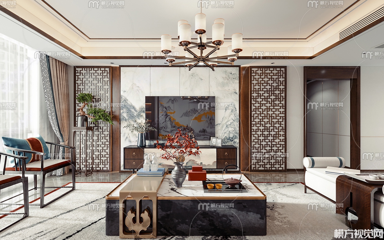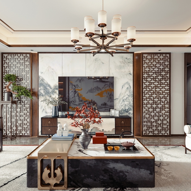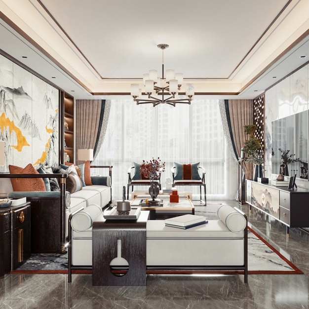 新中式客餐厅3D模型(ID:0006327)