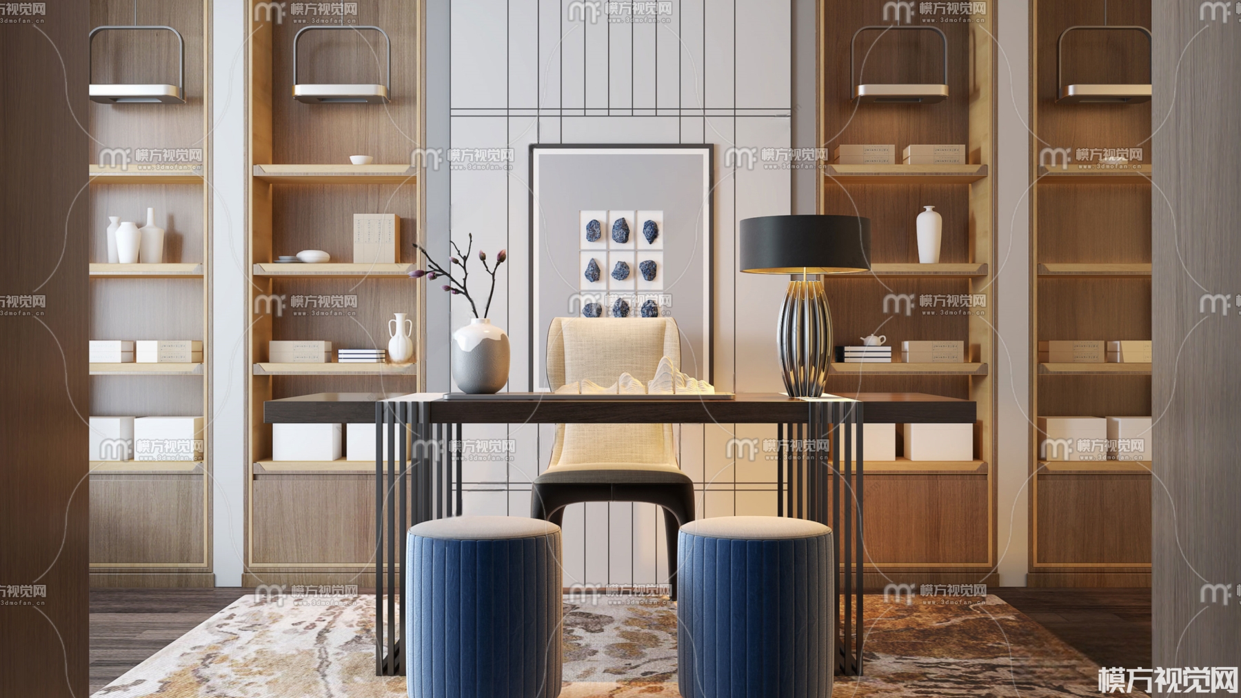 新中式书房3D模型(ID:0006339)