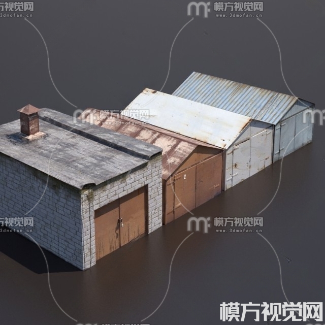 现代铁皮房 厂房3D模型(ID:0000650)