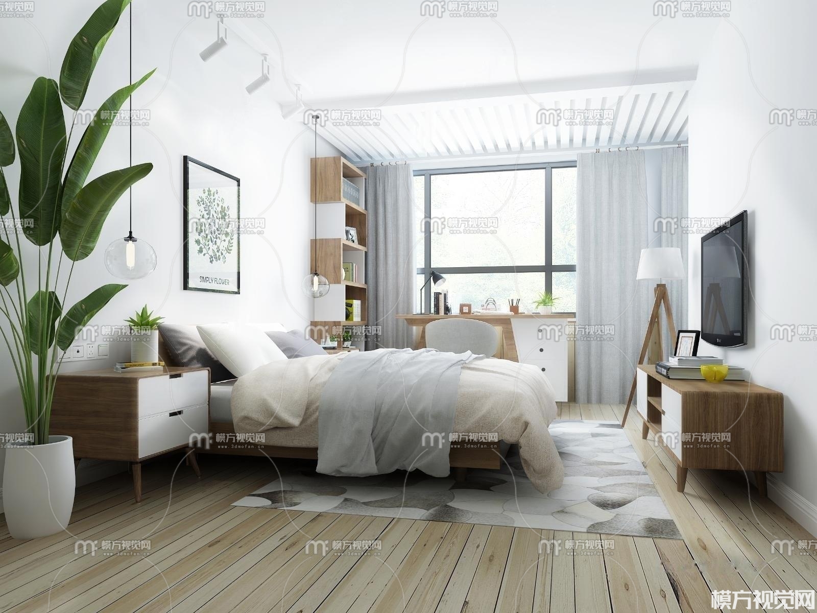 北欧卧室3D模型(ID:0006590)