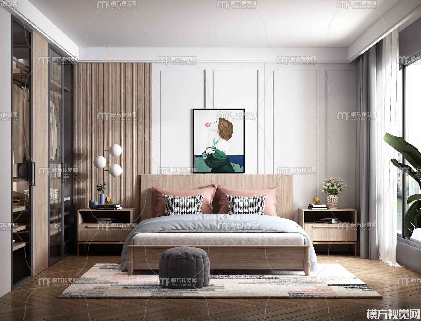 北欧卧室3D模型(ID:0006661)