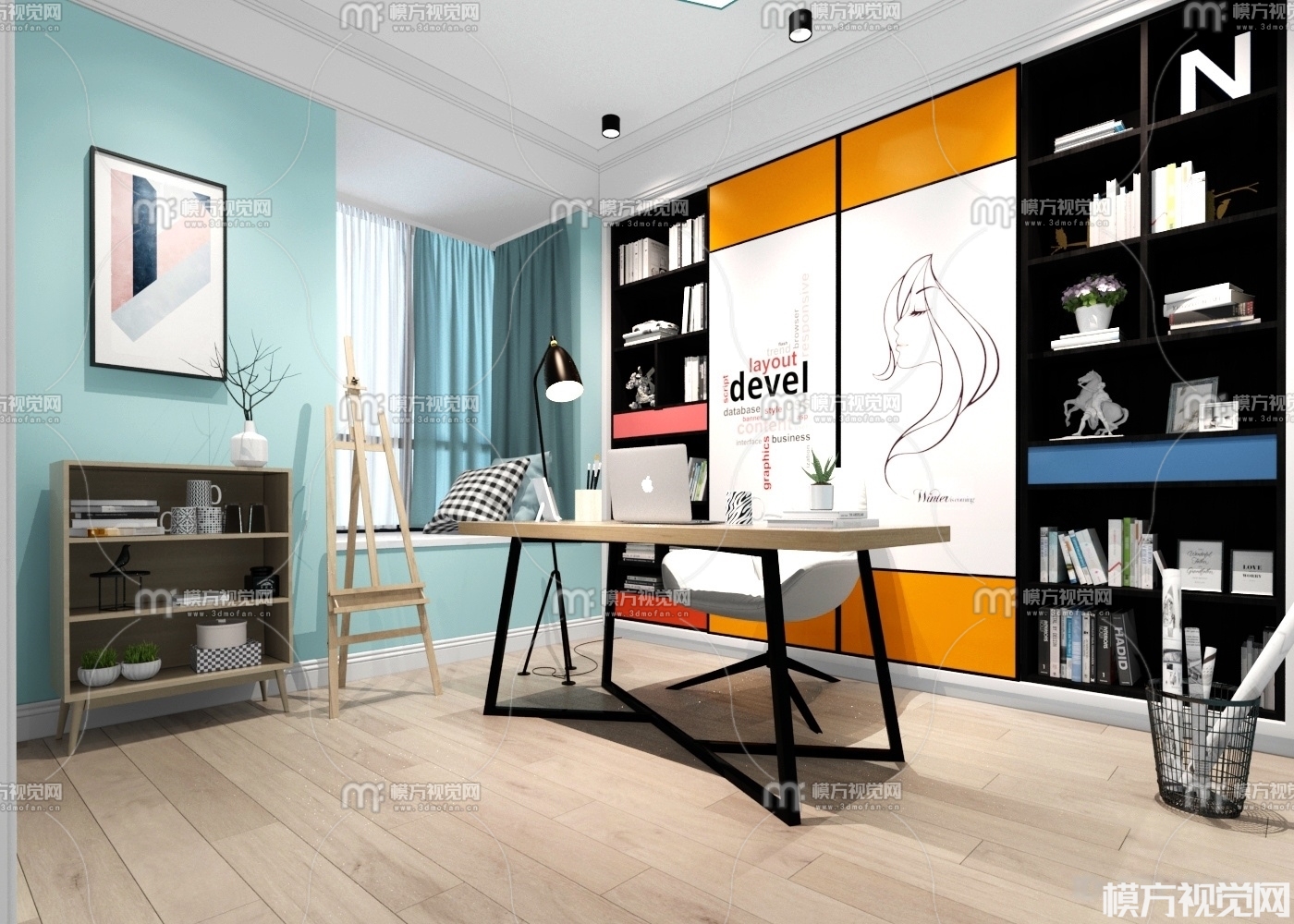 北欧书房3D模型(ID:0006681)