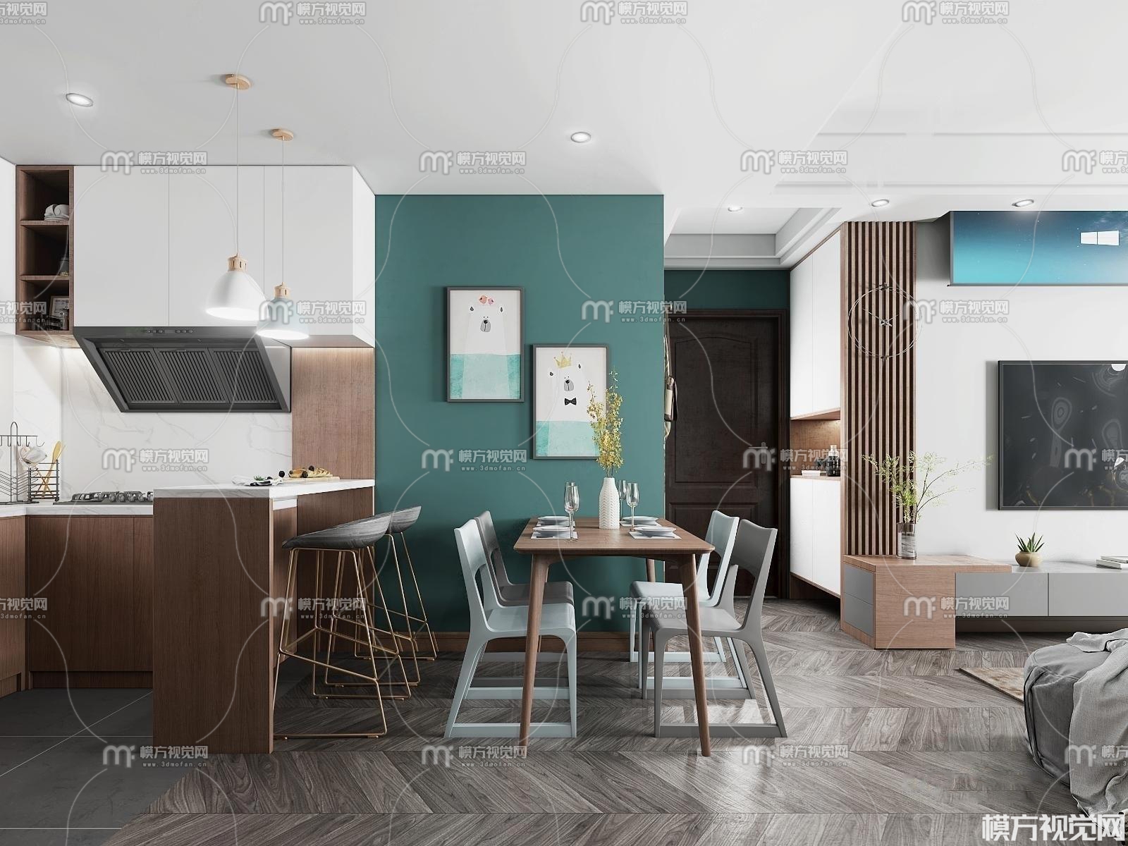 北欧客餐厅3D模型(ID:0006719)