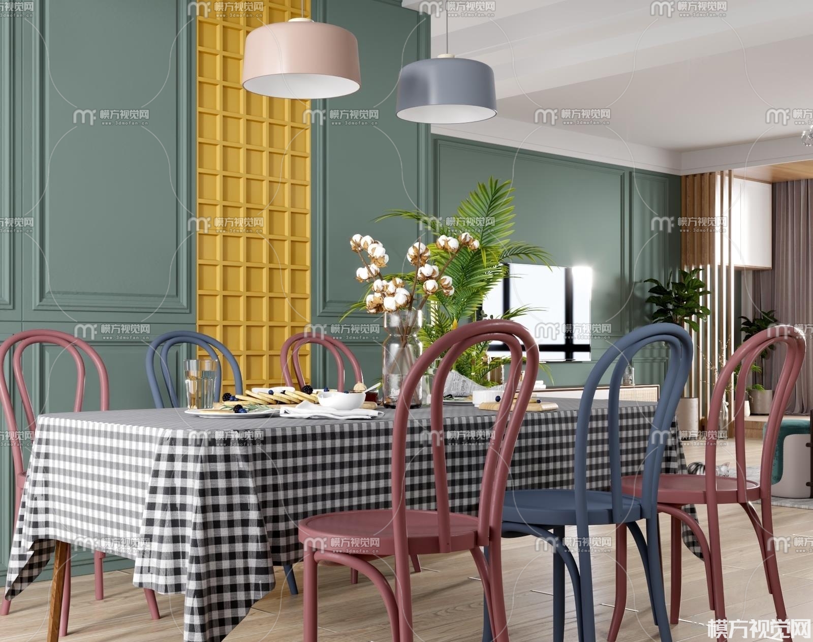 北欧客餐厅3D模型(ID:0006821)
