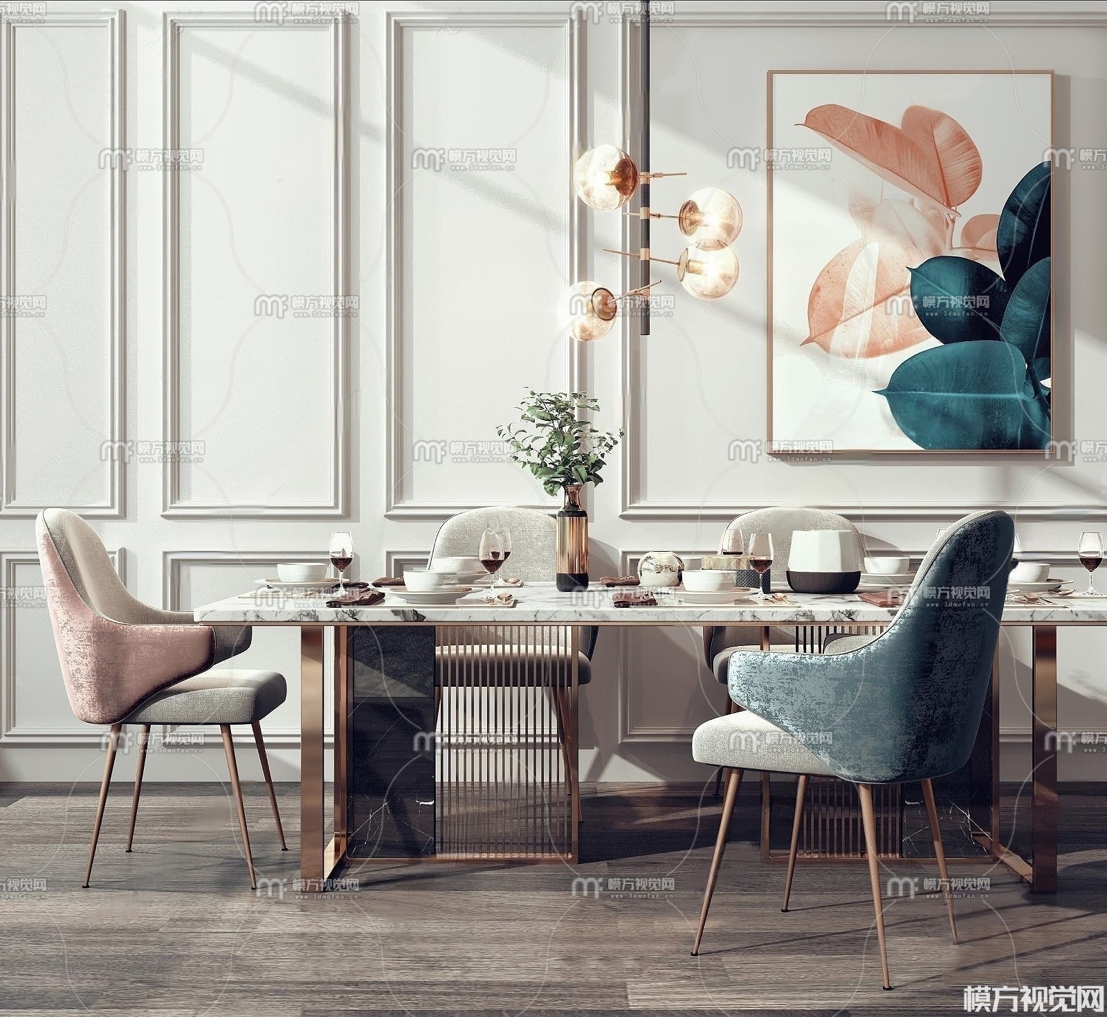 现代餐桌椅组合3D模型(ID:0006893)