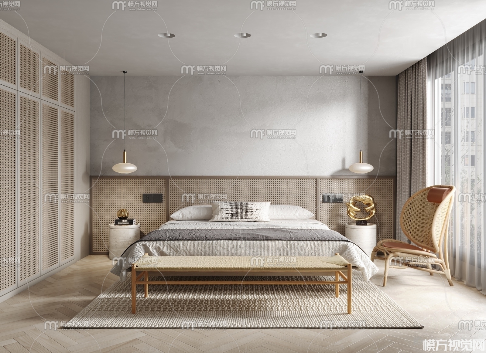 侘寂风卧室3D模型(ID:0007104)