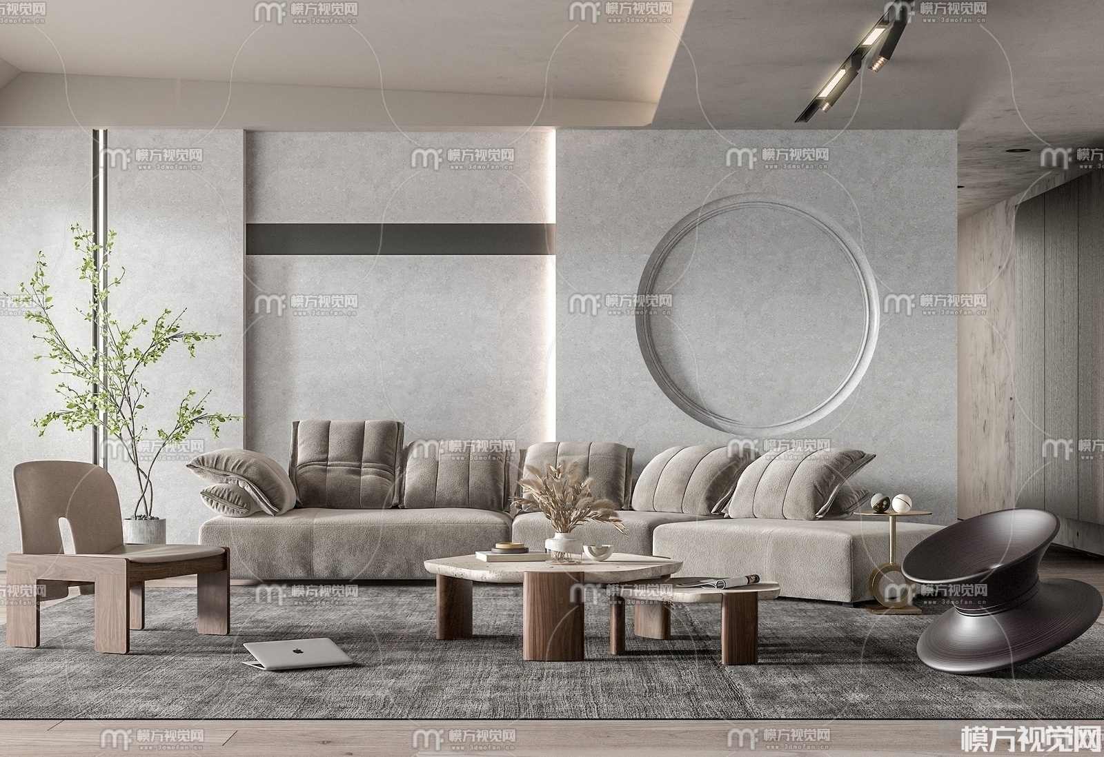 侘寂风沙发茶几组合3D模型(ID:0007114)