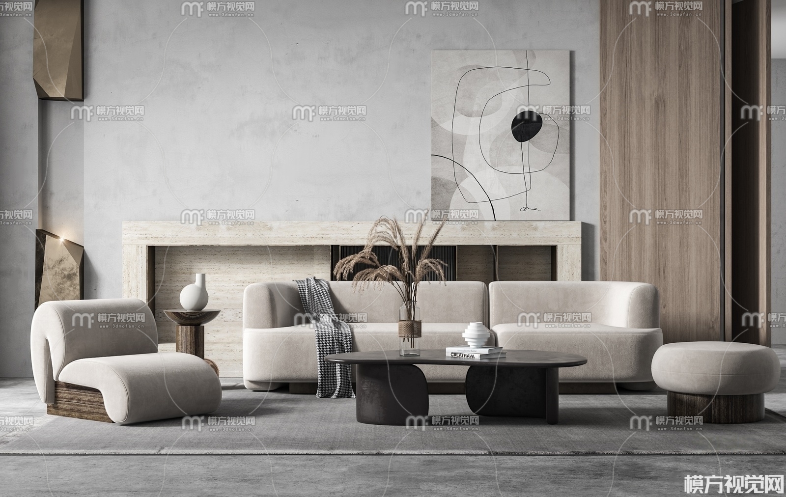 侘寂风沙发茶几组合3D模型(ID:0007117)