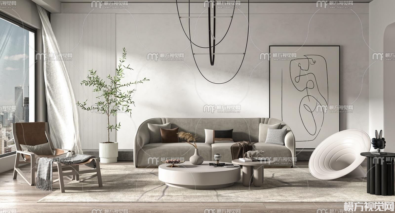 侘寂风沙发茶几组合3D模型(ID:0007136)
